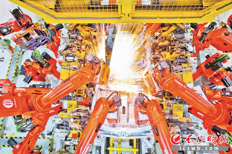 廣汽菲克長沙工廠焊接車間火花四濺,有序生產(chǎn)。